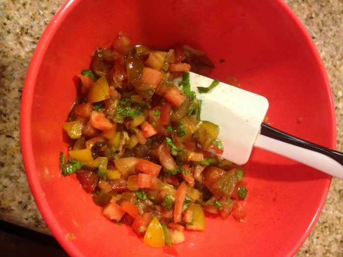 In this recipe, I have used Heirloom tomato and 1 regular tomato you can use cherry tomato or plum tomato.
