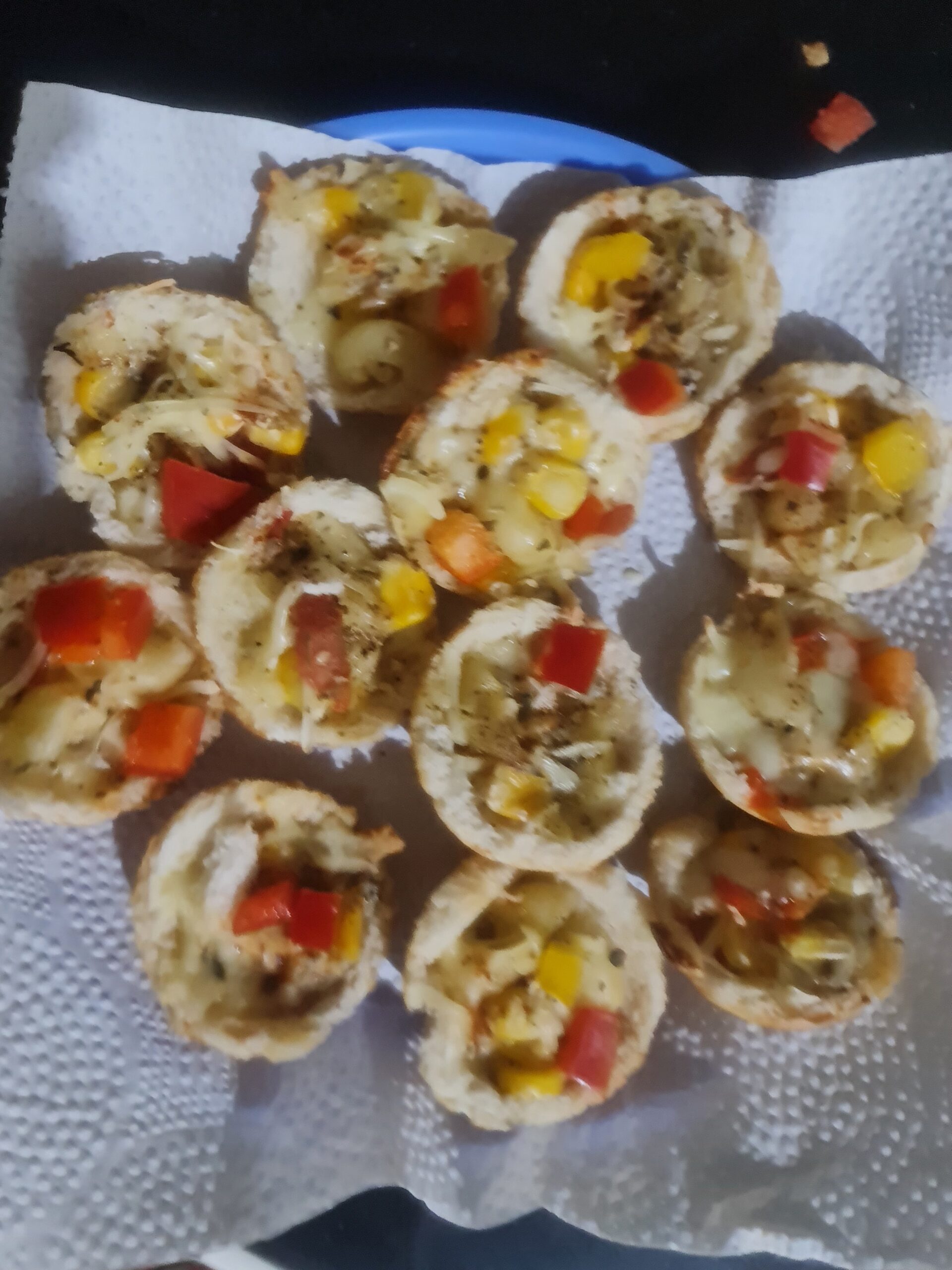 Fill corn and cheese filling on each circle. Cook over low heat for 2 minutes, then cover for 1 minute and cook for another 2 minutes. Carefully lift the corner and check if it turns golden brown from the bottom, otherwise, continue cooking until it turns golden brown. Take out and top up with ketchup and serve hot or cold. Your crunchy mini canapes or ready to rock!!!!!!!!