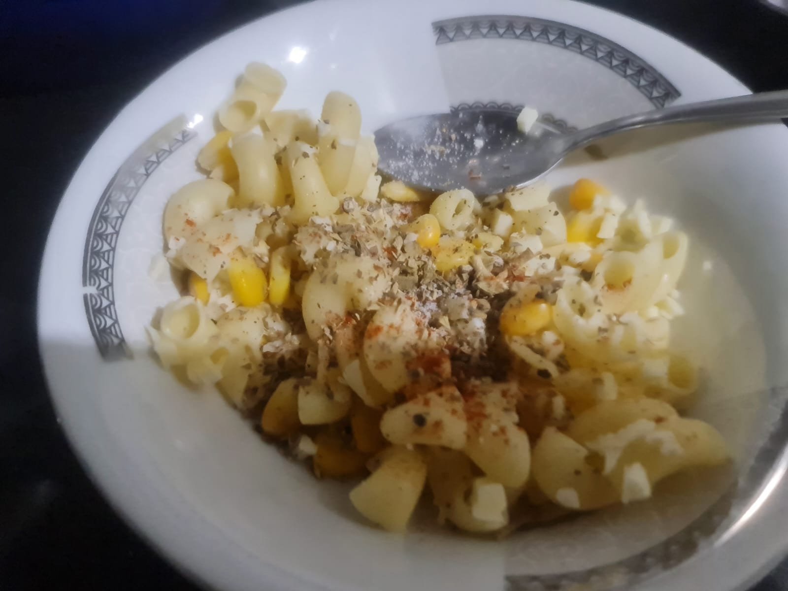 - In a mixing bowl add grated Mozzarella cheese, boiled sweet corn, chopped capsicum, salt, black pepper, red chilli flakes, and oregano.