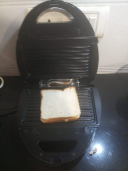 Take out and cut sandwiches diagonally and serve hot with tomato sauce or coriander chutney.