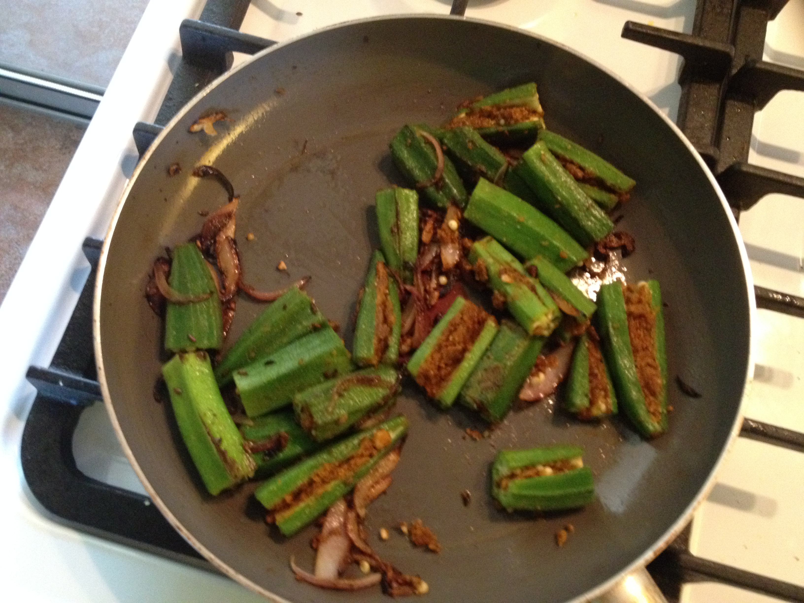 stuffed bhindi/okra can be cooked without onion and garlic. only you need to skip those steps.