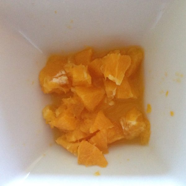 Add sugar or honey if you are using and mix. Now add chopped orange with juice and mix gently.