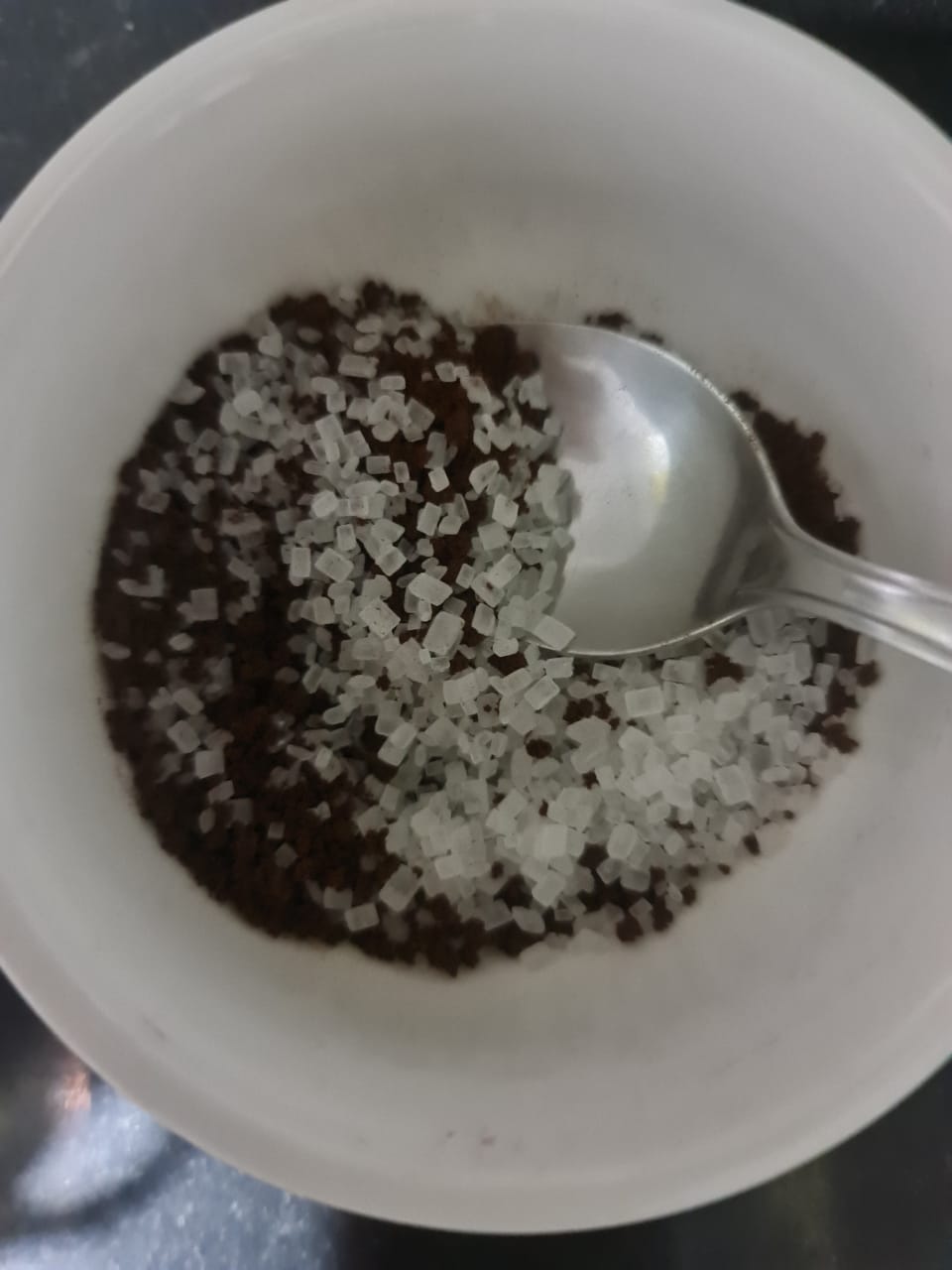 Take a glass bowl add coffee and sugar and 2 spoon water mix and beat vigorously until light and fluffy